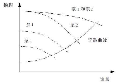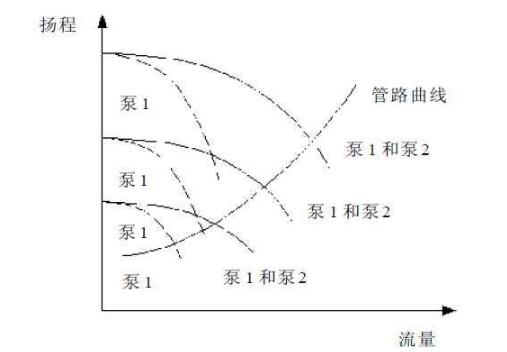 (2)應使單臺水泵的性能曲線與管路性能曲線有交點,而且交點不要離水泵性能曲線末端太近,這樣就不會發生氣蝕現象。